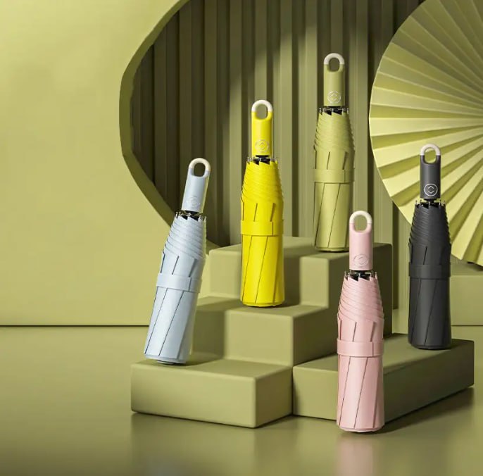 All Color-Lock 3-Fold Umbrella with Carabiner Handle – Compact, Auto Open & UV Protected
